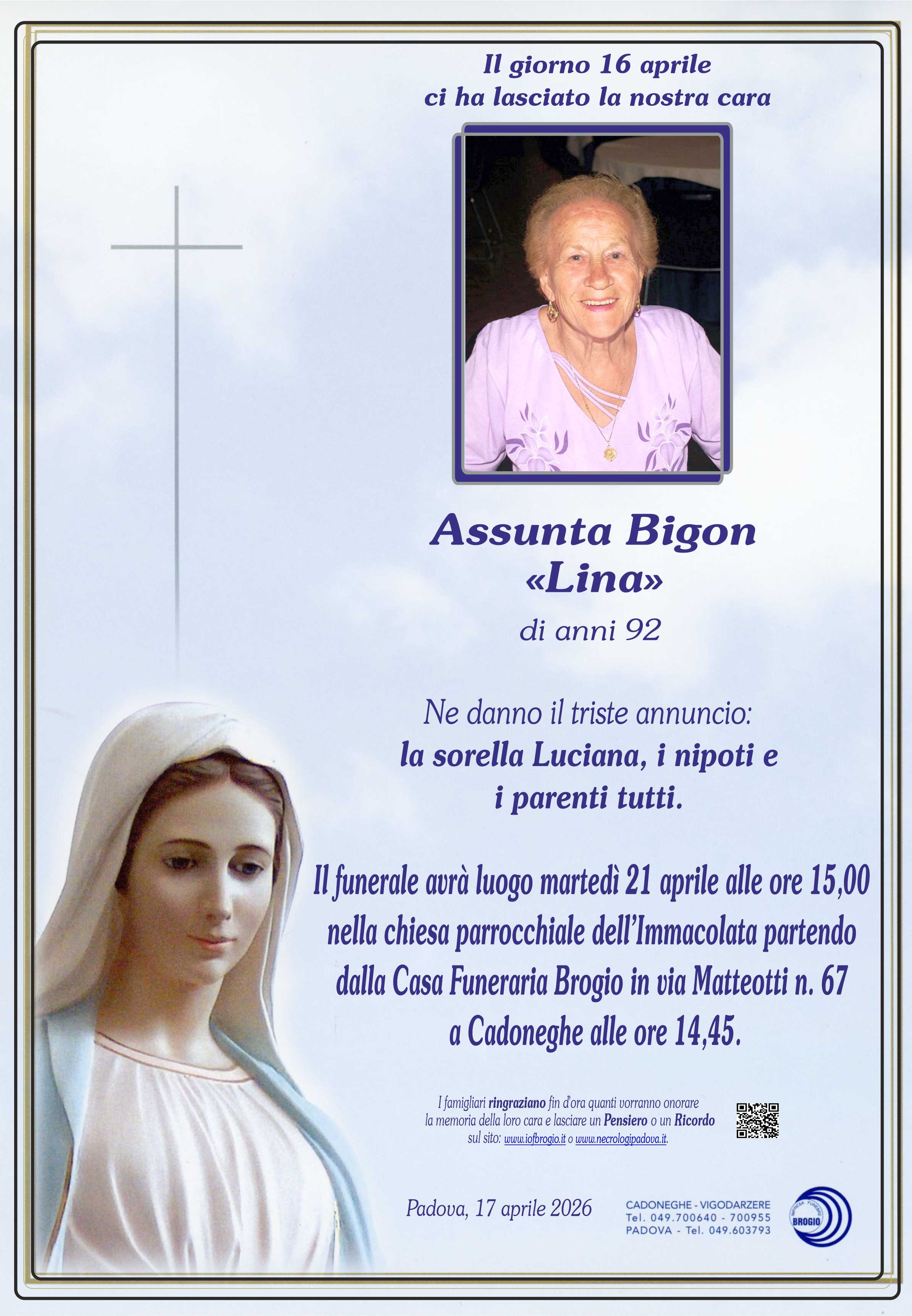 NECROLOGIO Assunta Bigon