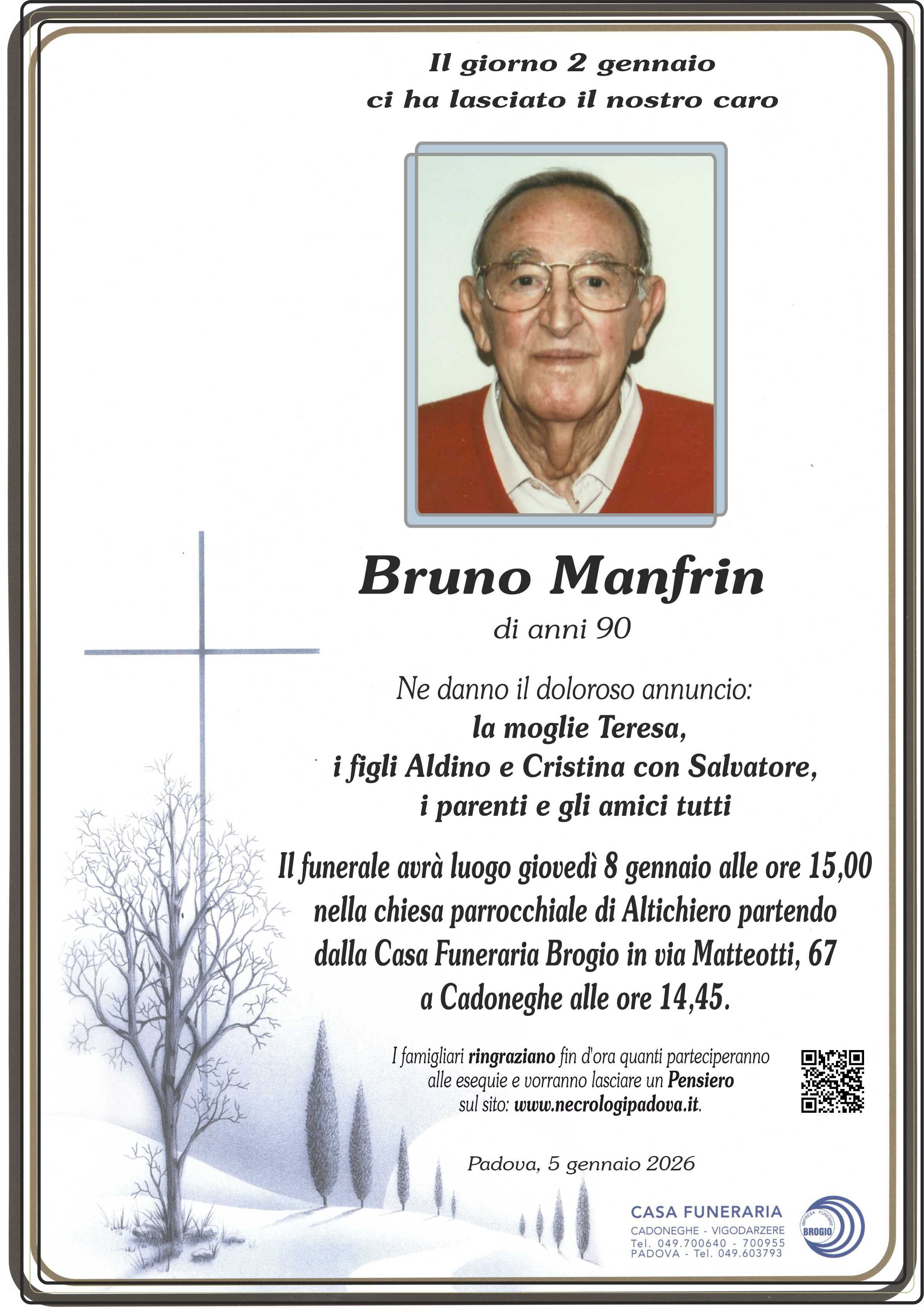 NECROLOGIO Bruno Manfrin