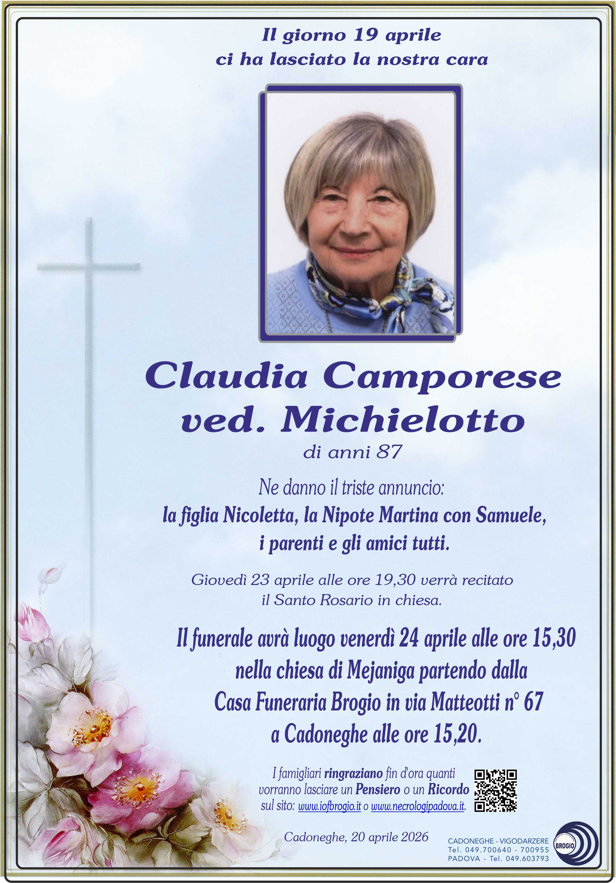 NECROLOGIO Claudia Camporese