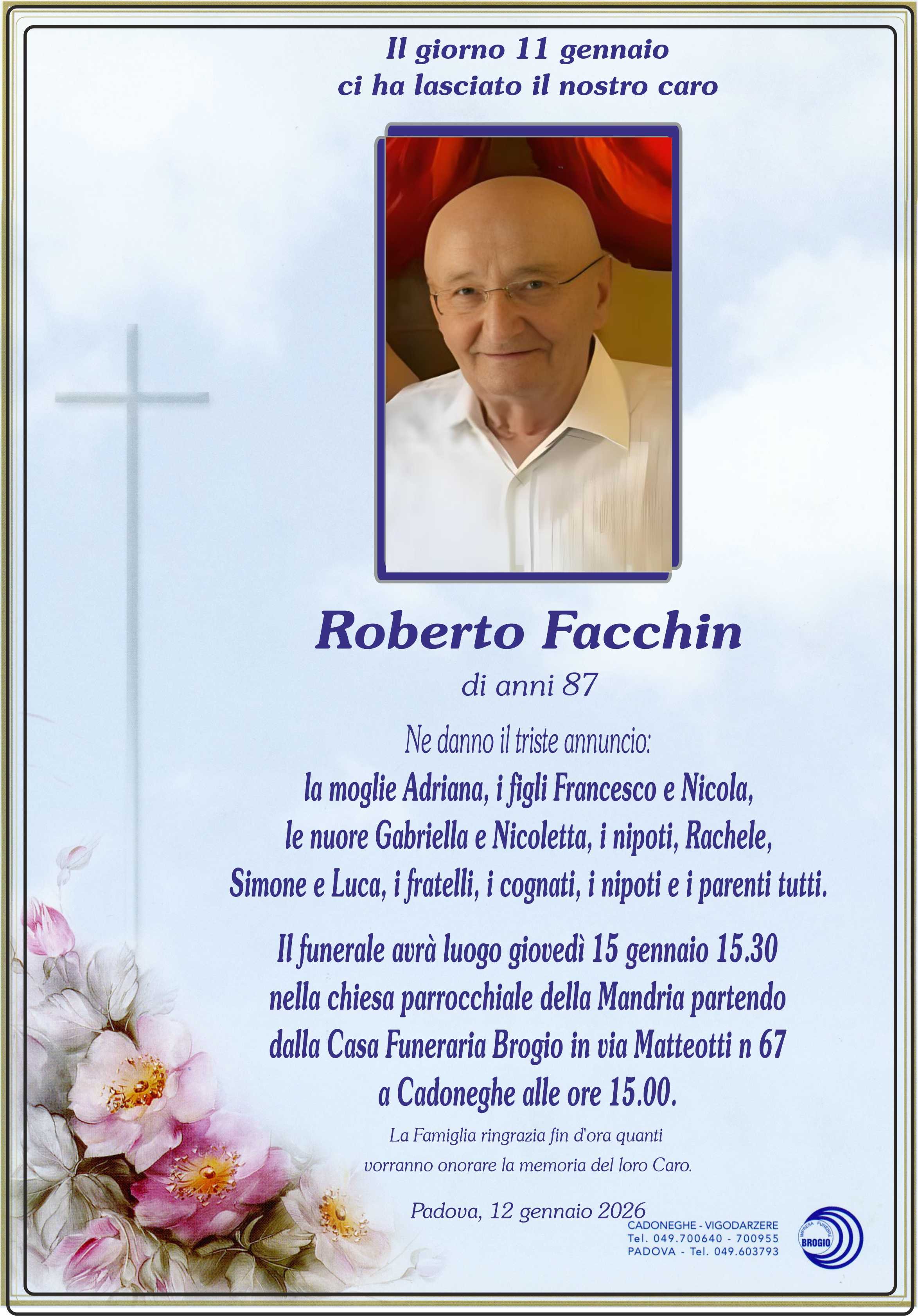 NECROLOGIO Roberto Facchin